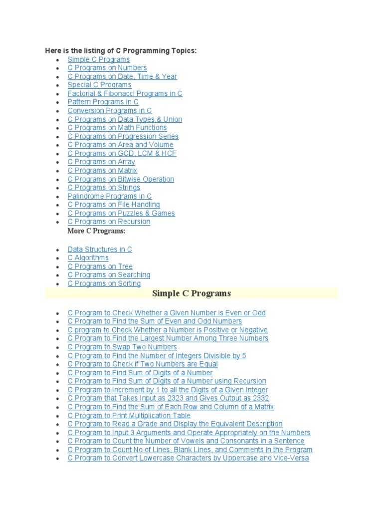 Here Is The Listing of C Programming Topics | PDF | Area | String ...