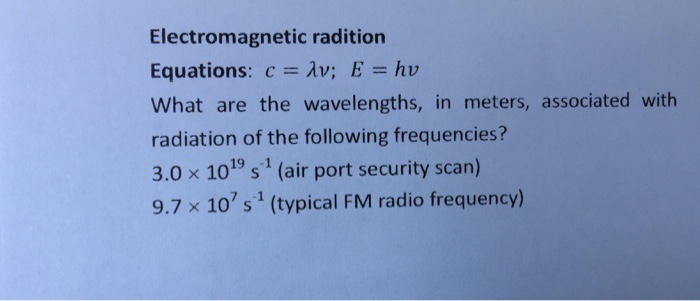 Solved Equations: c = lambda_v; E = hv What are the | Chegg.com