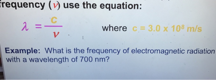 Solved: The formula f equals c over lambda, where f = frequency, c ...