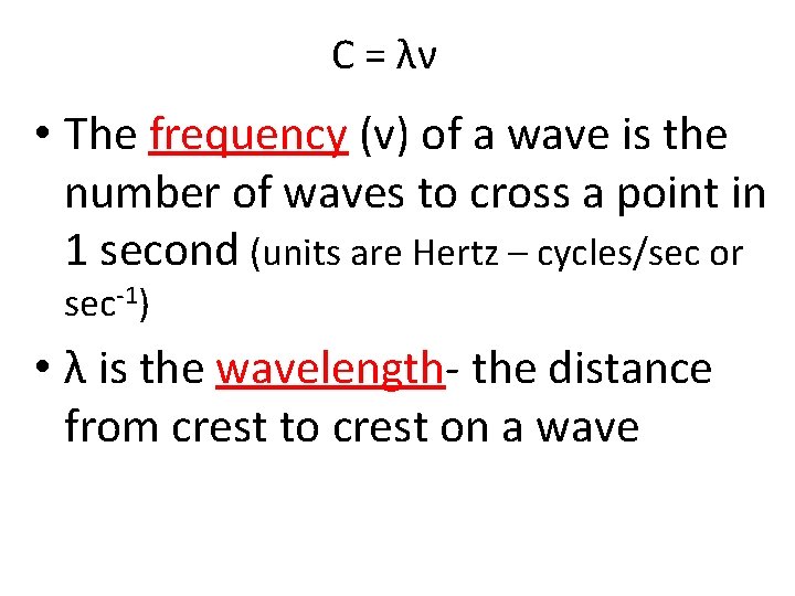 Solved c=λν where c is the speed of light, λ is the | Chegg.com