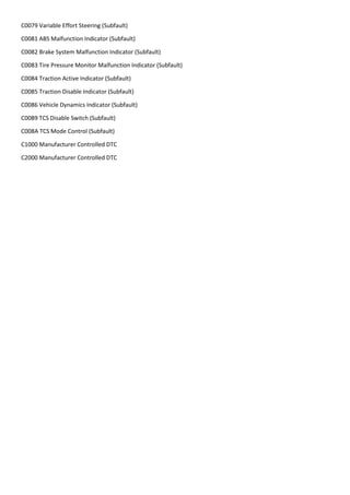 Full OBD2 Chassis Trouble Code List (CXXXX) | PDF