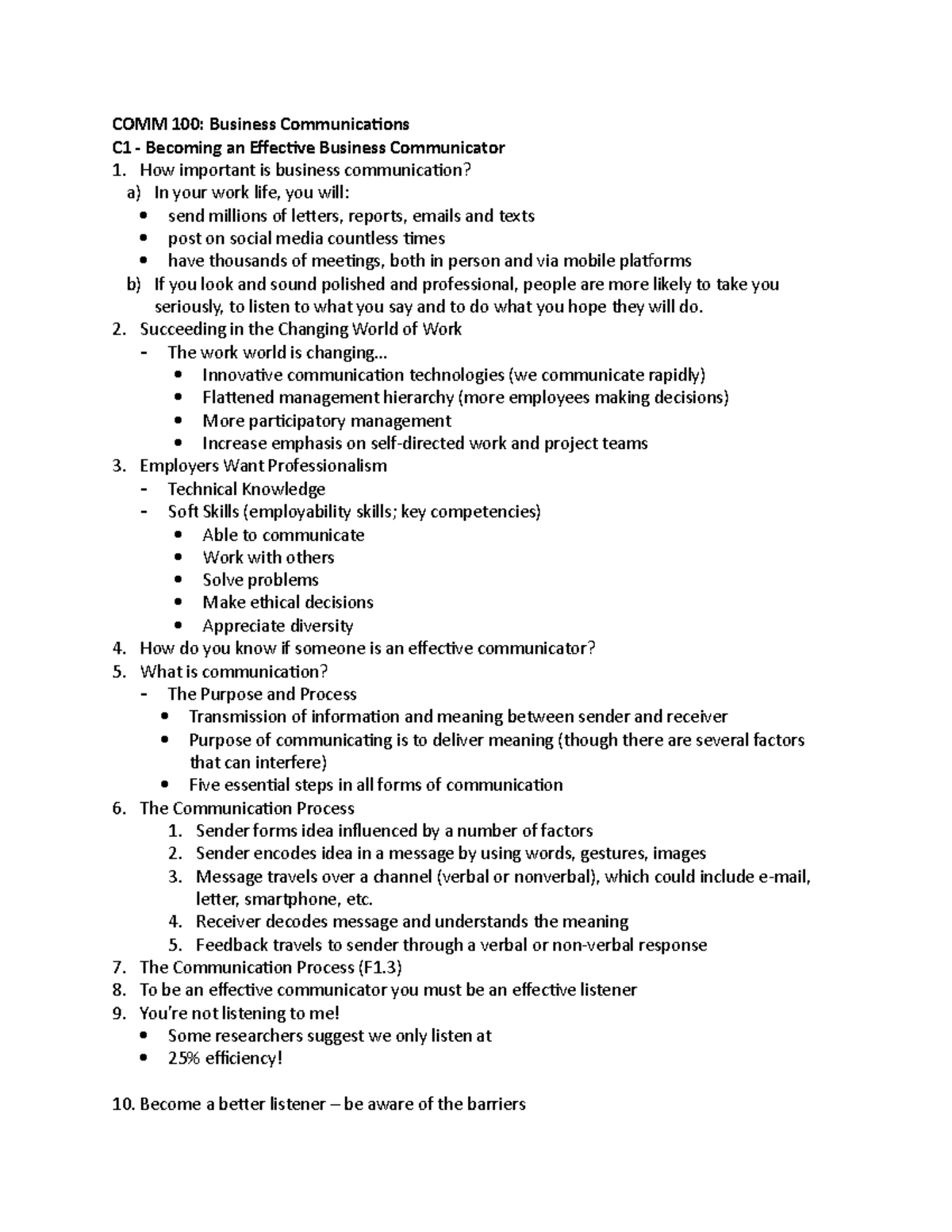 C1-2 - business lecture taking - COMM 100: Business Communications C1 ...