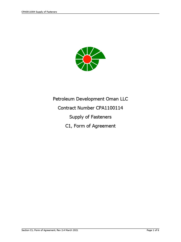 C1 - Form of Agreement Fastners | PDF | Business | Finance & Money ...