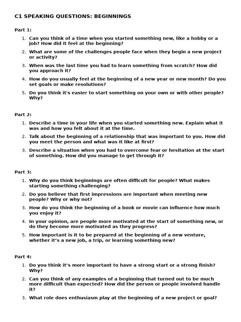 C1 Speaking Questions: Emotions, Excuses, Energy & Language - Studocu