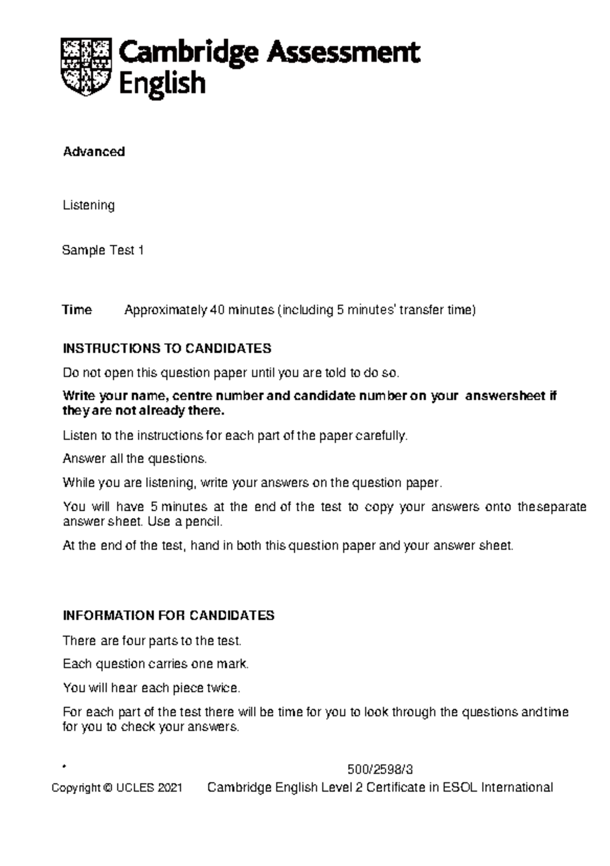 C1 Advanced Listening Sample Test 1 - Practice Paper 1 - Studocu