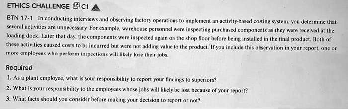 ETHICS CHALLENGE C1A BTN 17-1 In conducting interviews and observing ...