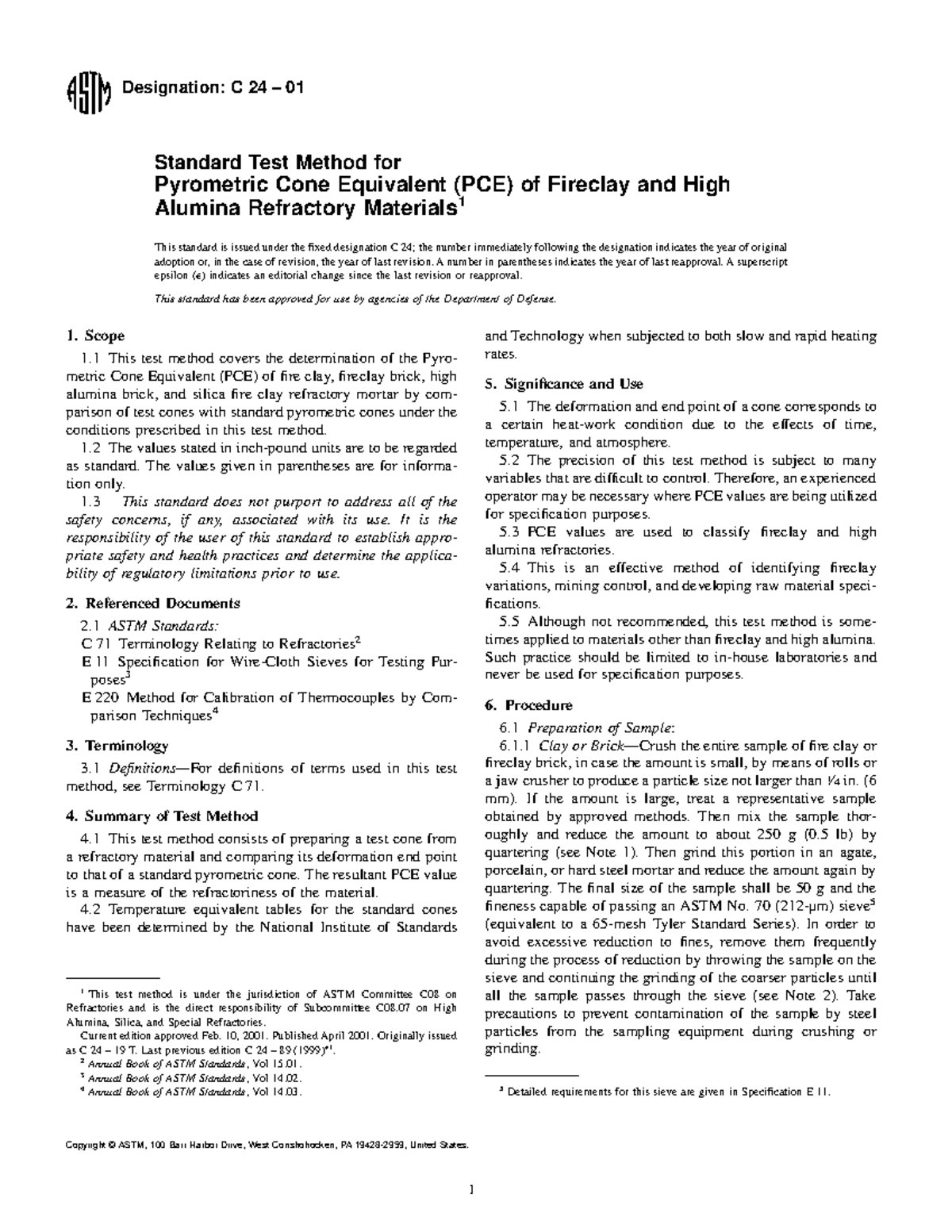 ASTM C24-09 - Standard Test Method for Pyrometric Cone Equivalent (PCE ...