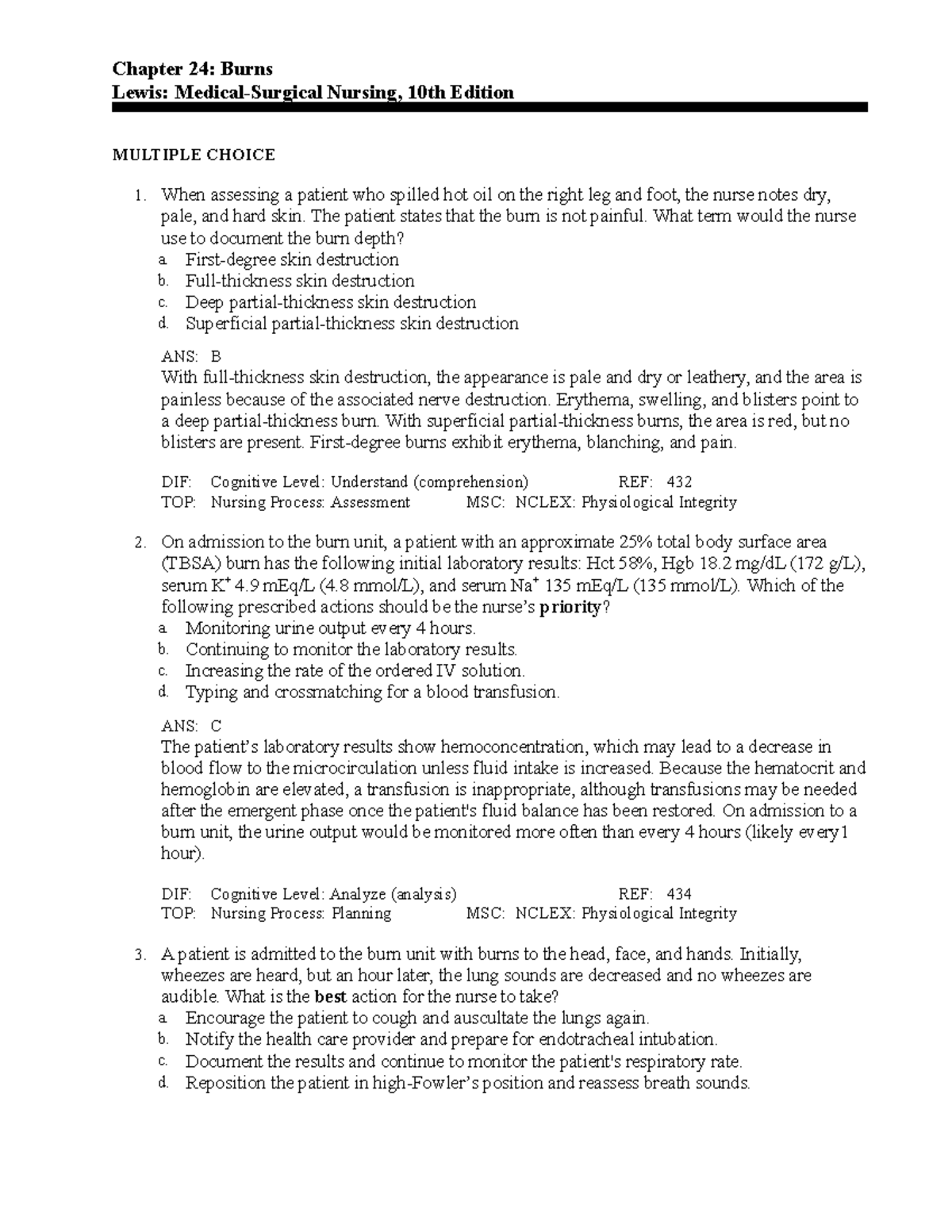 C24 - Chapter 24 Burns Test Bank and NCLEX Review Questions - Studocu