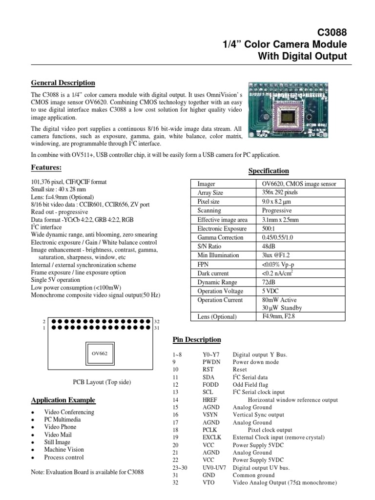 C3088 datasheet - 1/4 Color Camera Module With Digital Output