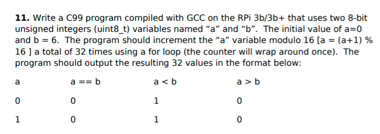 Solved 11. Write a C99 program compiled with GCC on the RPi | Chegg.com