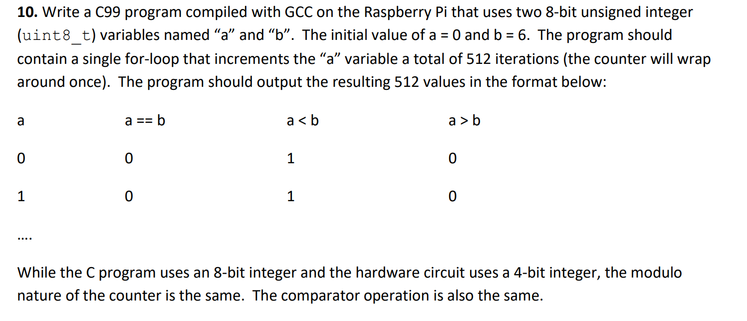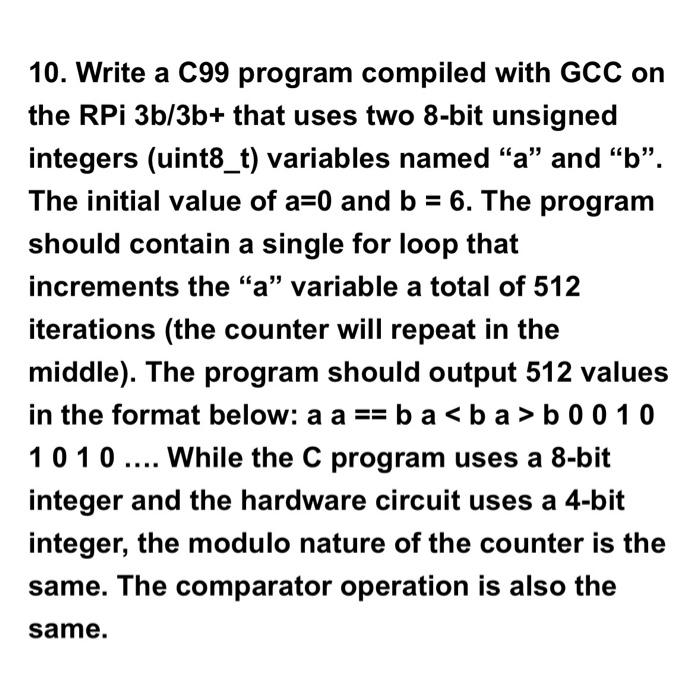 Solved 10. Write a C99 program compiled with GCC on the RPi | Chegg.com