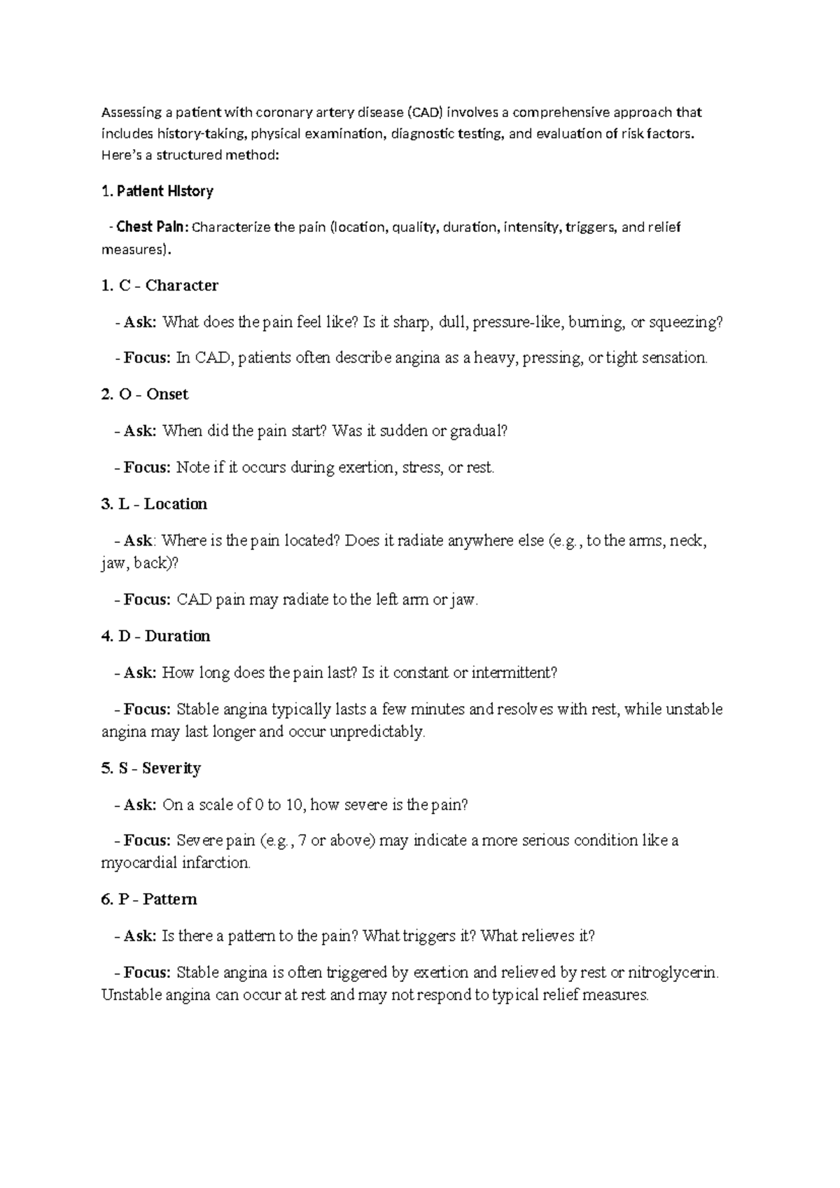 CAD Assessment AND DX - Assessing a patient with coronary artery ...