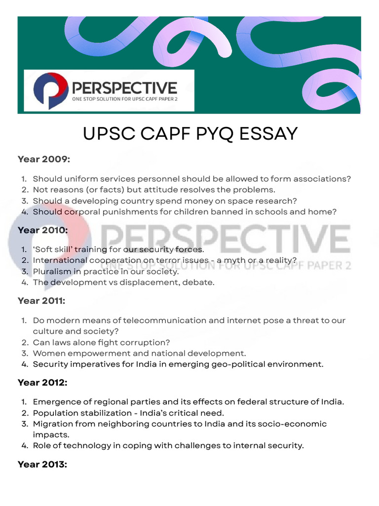 Perspective CAPF PYQ Essays - 2009 To 2024 | PDF | Securities | Military