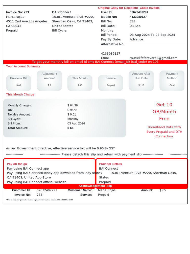 Cable Invoice for Maria Rojas - Sept 2024 | PDF | Receipt | Service ...