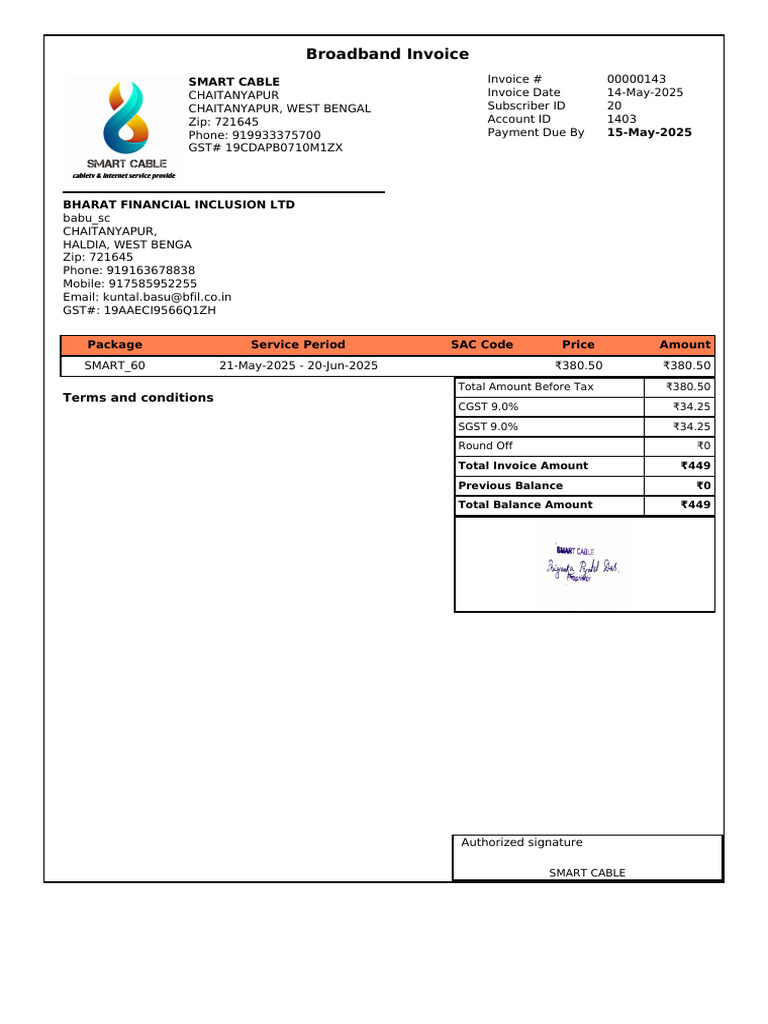 Broadband Invoice: Smart Cable | PDF
