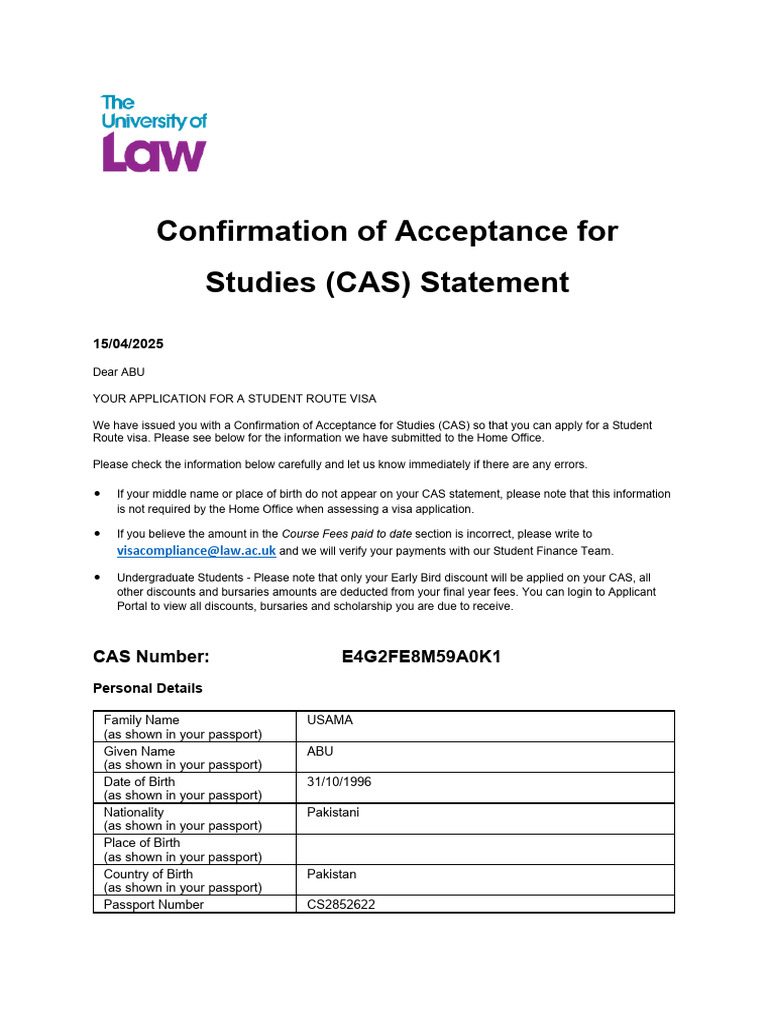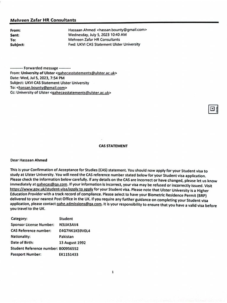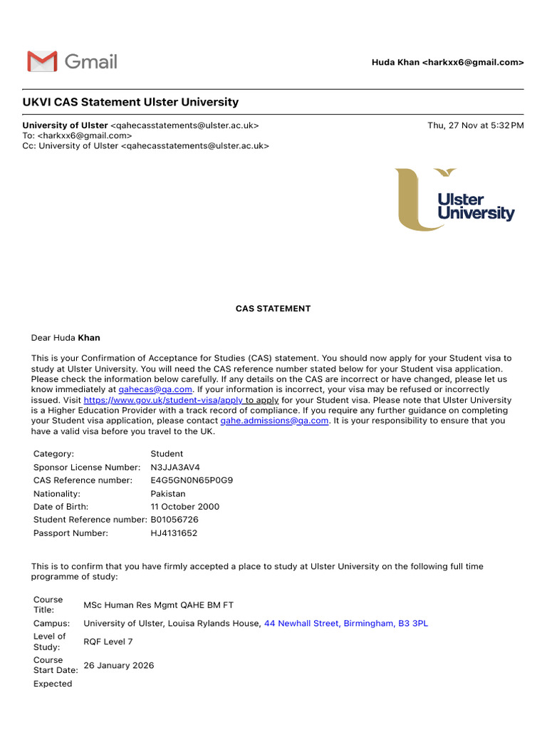 UKVI CAS Statement Ulster University | PDF | Travel Visa ...