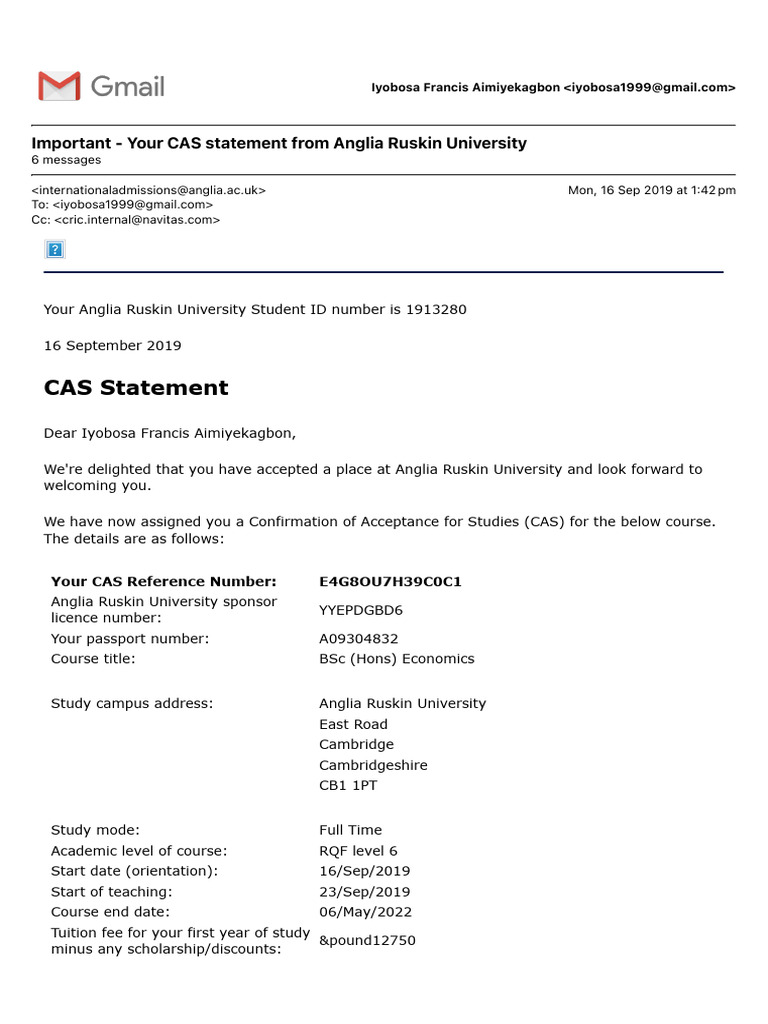 CAS Statement: Important - Your CAS Statement From Anglia Ruskin ...