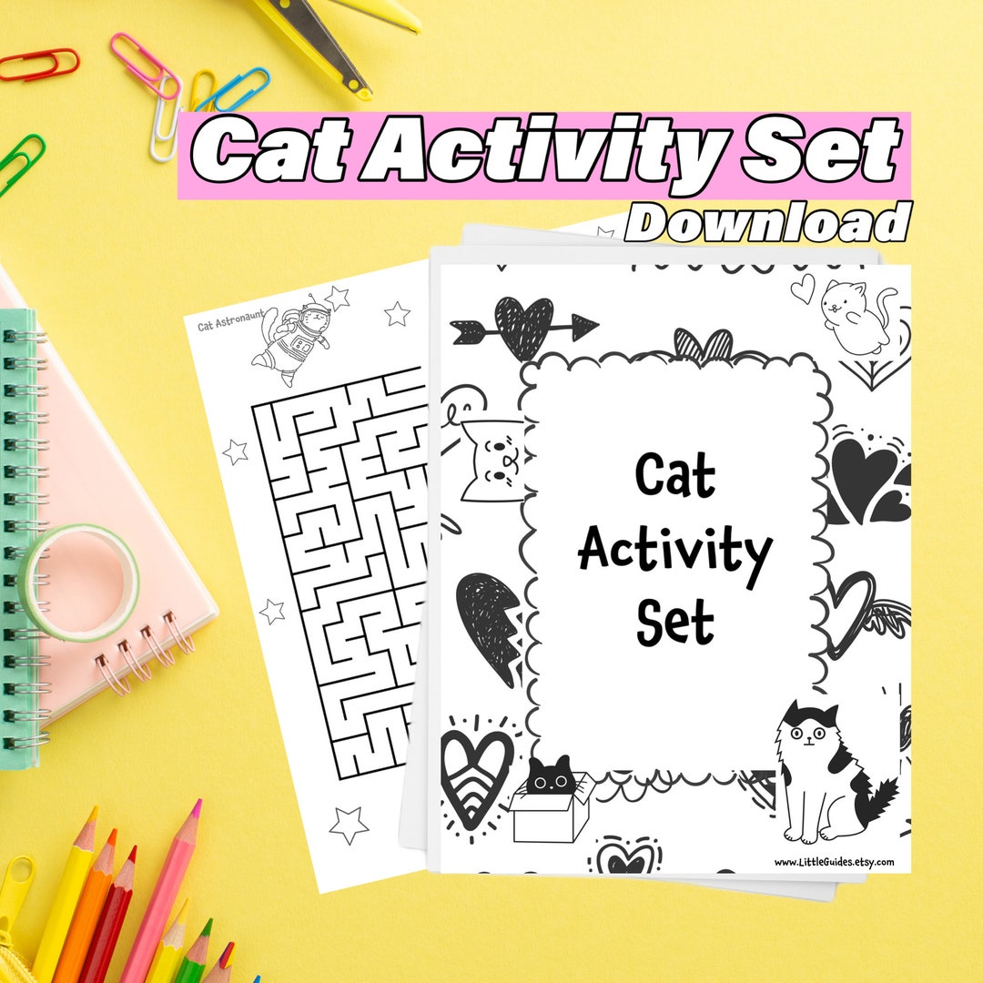 Cat Activity Set: Coloring Pages, Mazes, and More (downloadable) - Etsy