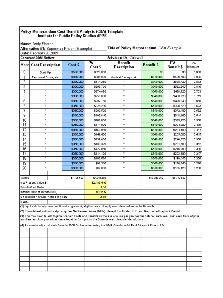 CBA Example for Supermax Prison | PDF | Net Present Value | Internal ...