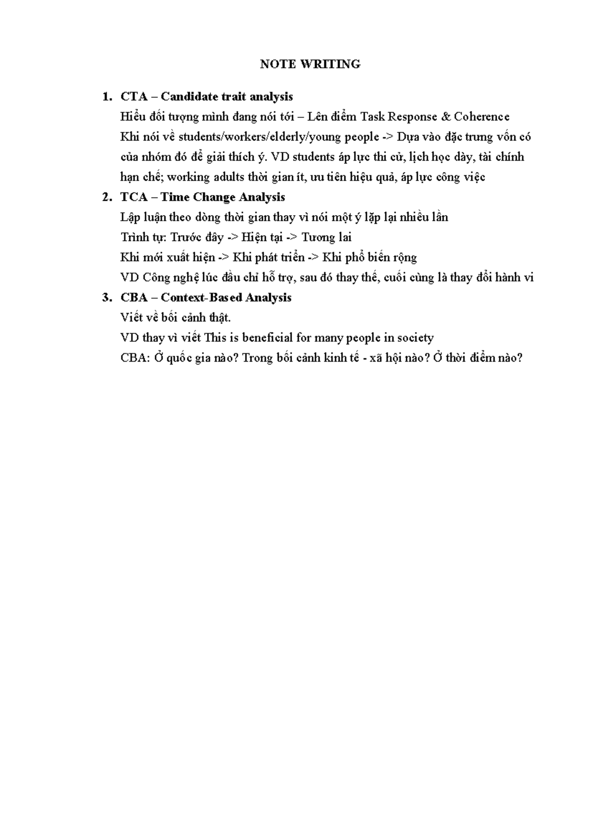 NOTE Writing: CTA, TCA, and CBA Analysis Techniques - Studocu