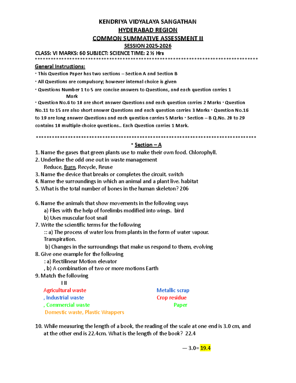 CBSE Class 6 Science Sample Paper for Summative Assessment II - Studocu