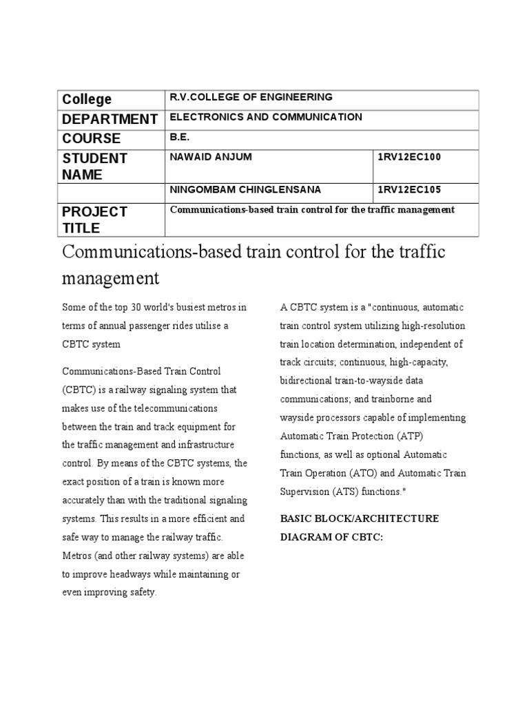 CBTC Project | PDF | Transport Safety | Rail Transport