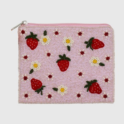 La Chic Designs Pink Strawberries Beaded Coin Pouch : Target