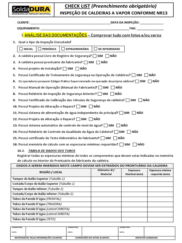 Checklist de Inspeção de Caldeira a Vapor | PDF | Caldeira | Ciências ...