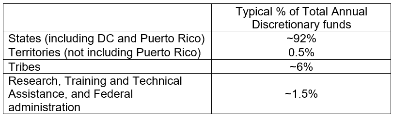CCDF Discretionary awards for States for CR lasting through January 30 ...