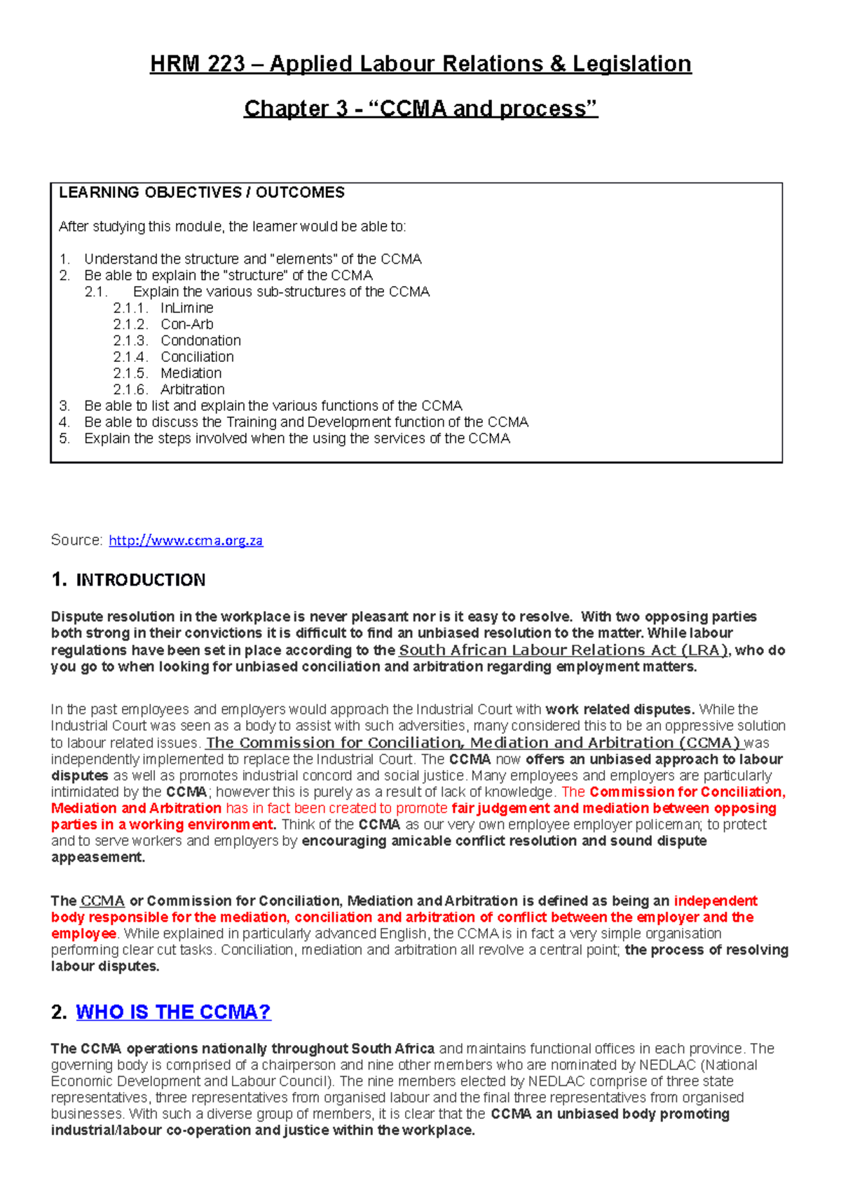 HRM 223 - Class Notes - Unit 3 - CCMA process .docx - HRM 223 - Applied ...