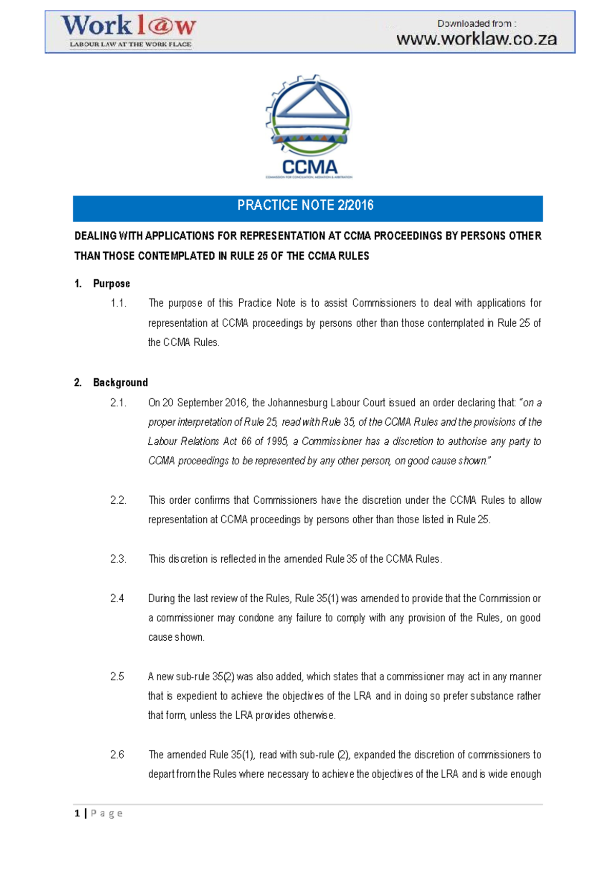 CCMA Note 2/2016: Guidelines for Representation in Arbitration - Studocu