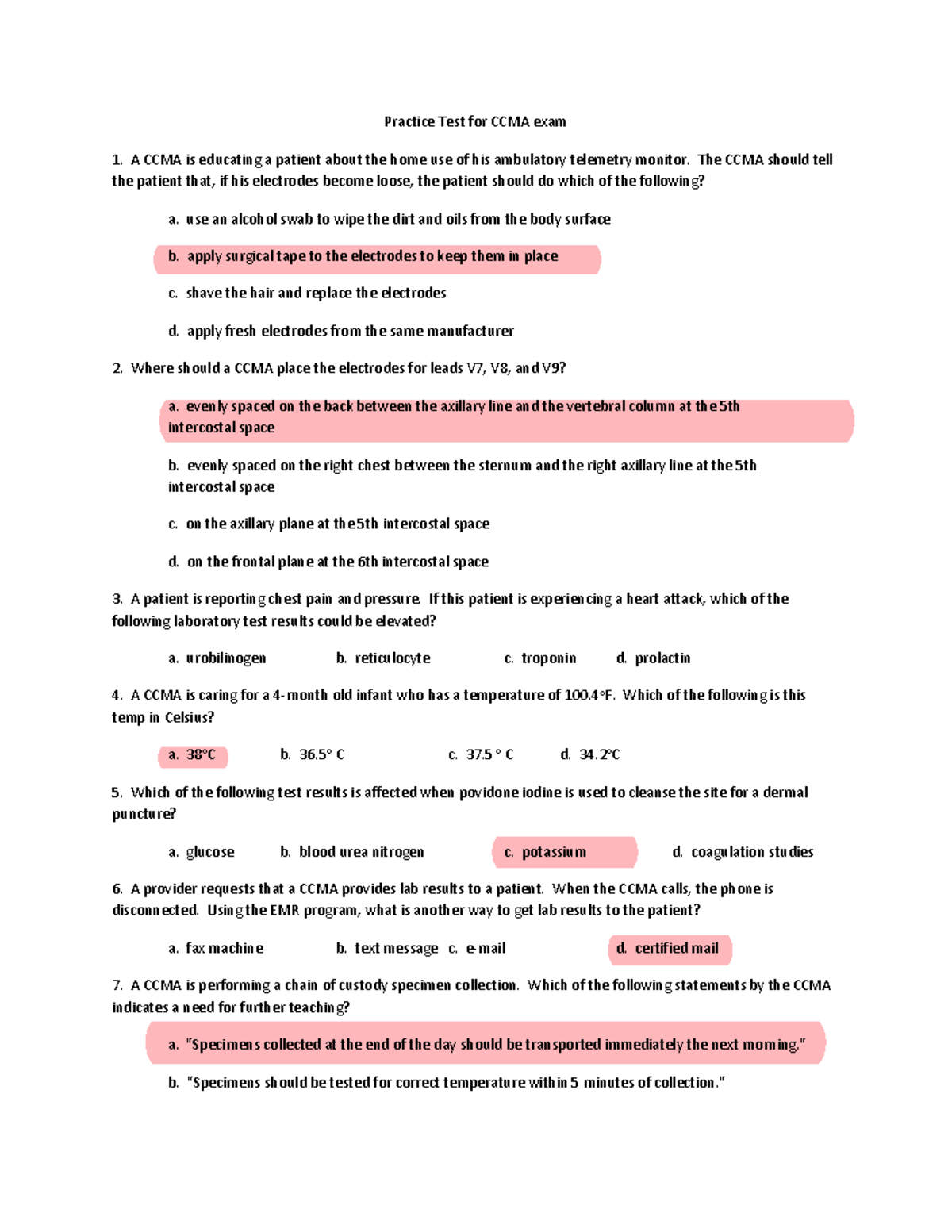 CCMA NHA Practice Test – Scholarfriends - Scholarfriends