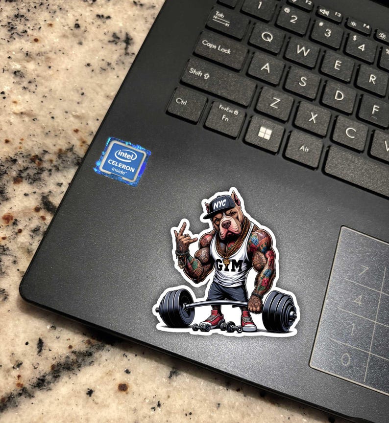 Pitbull Sticker - Pitbull Gym Bodybuilder Dog NYC Decal Sticker - Vinyl ...