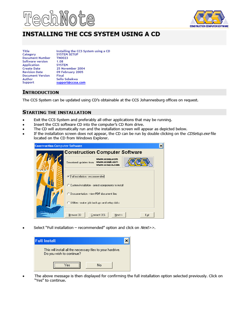 CCS System CD Installation Guide | PDF | Installation (Computer ...