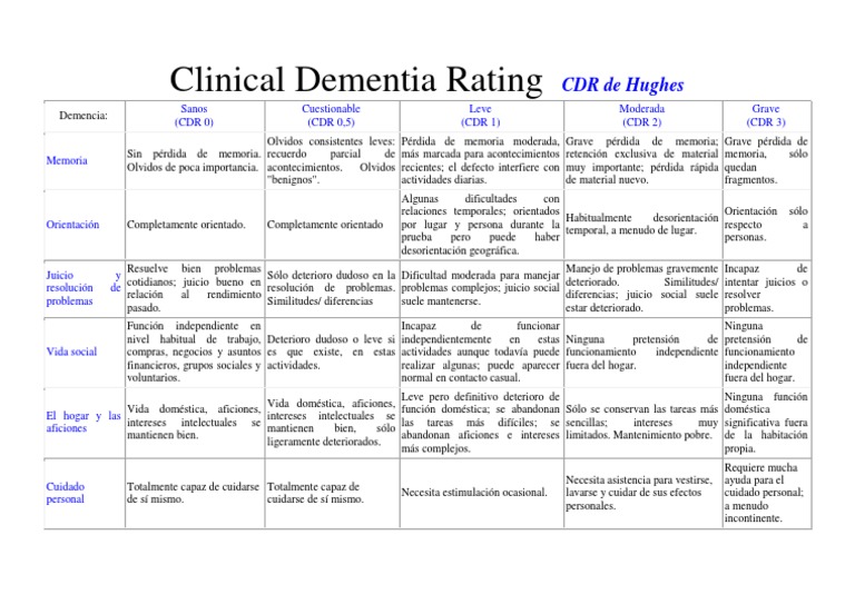 Clinical Dementia Rating - Cdr Hughes | Memoria | Cognición
