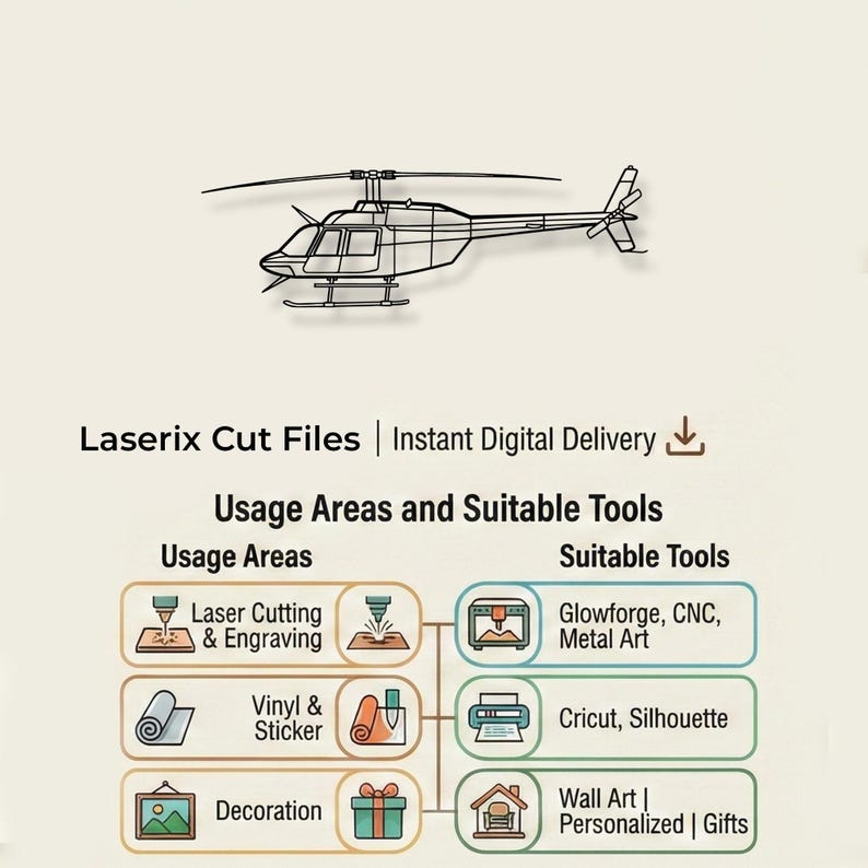 Bell 206 Helicopter Silhouette Vector for Laser Cut, CNC, Glowforge ...
