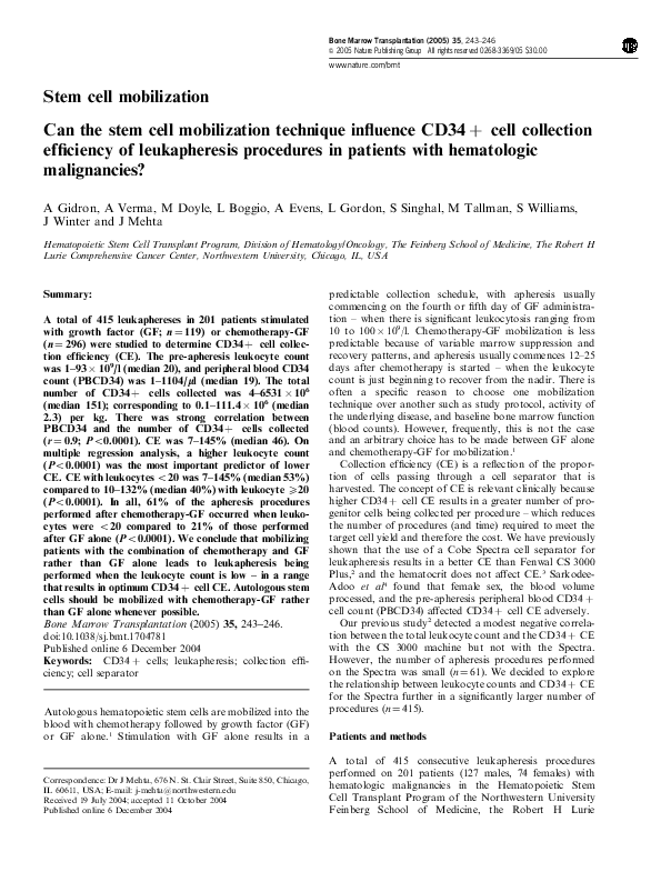 (PDF) Low hematocrit reduces the efficiency of CD34 + cell collection ...