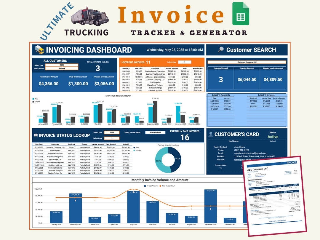 Trucking Invoice Generator and Tracker | Payment & Billing Spreadsheet ...