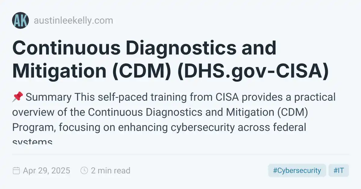 Continuous Diagnostics and Mitigation (CDM) (DHS.gov-CISA)