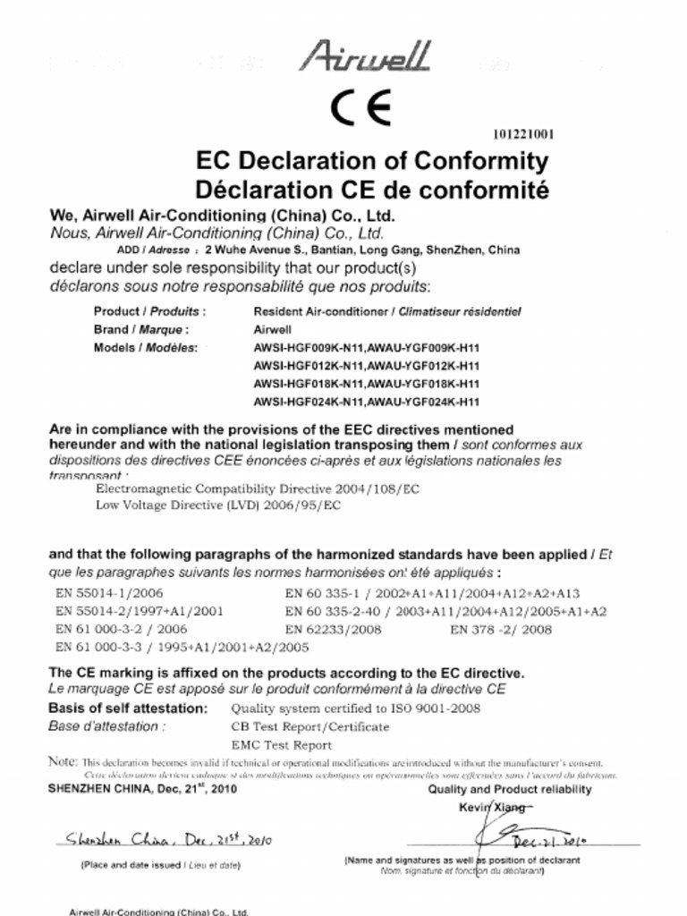 CE Declaration of Conformity - Haier MRV | PDF | Manufactured Goods ...