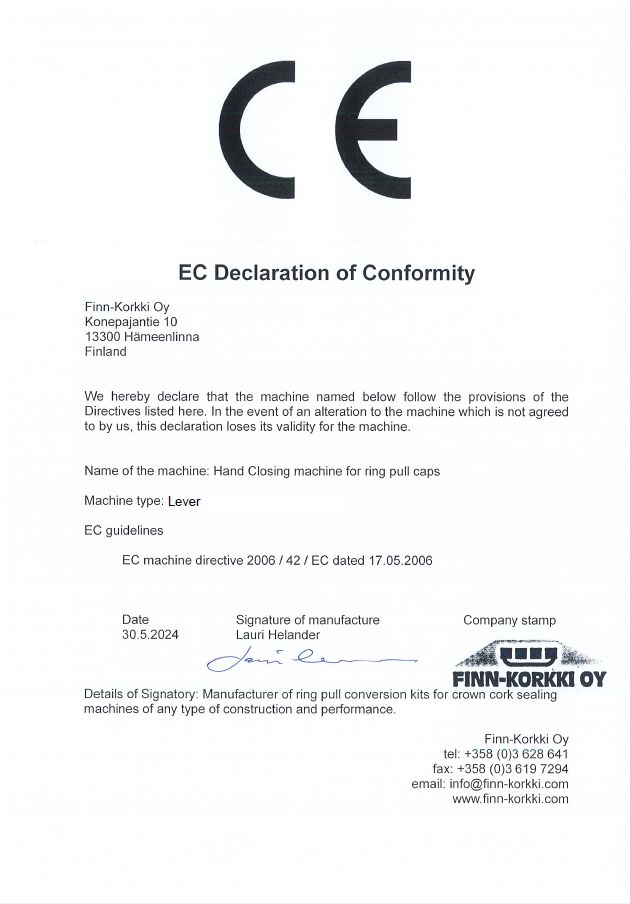 CE Declaration of Conform