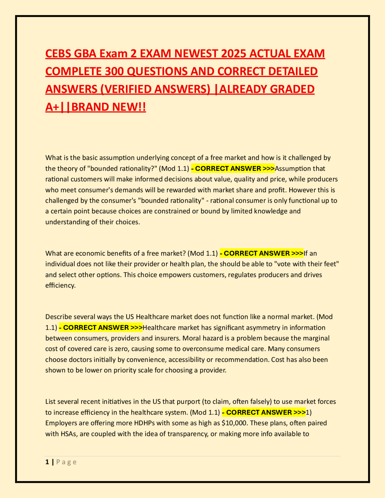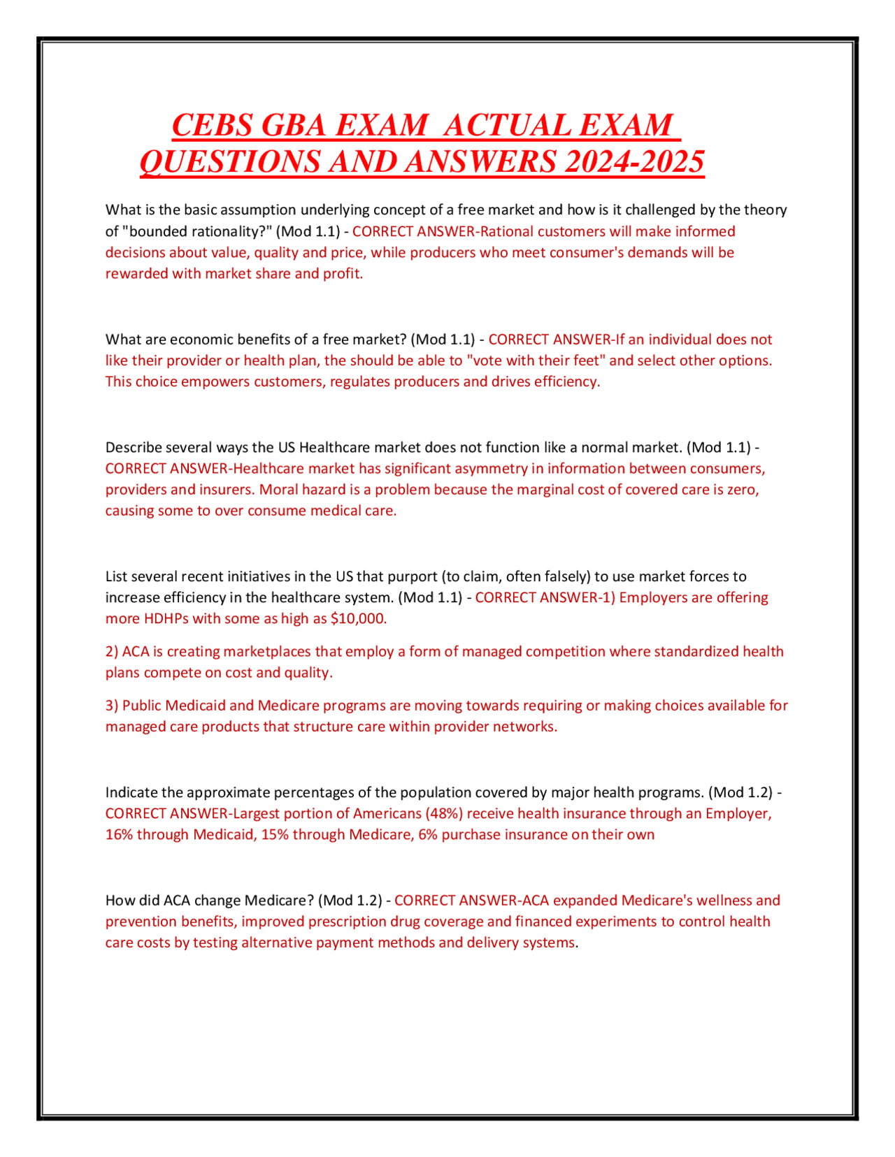 2025 Latest Update CEBS GBA Exam 1 Questions and Verified Answers ...