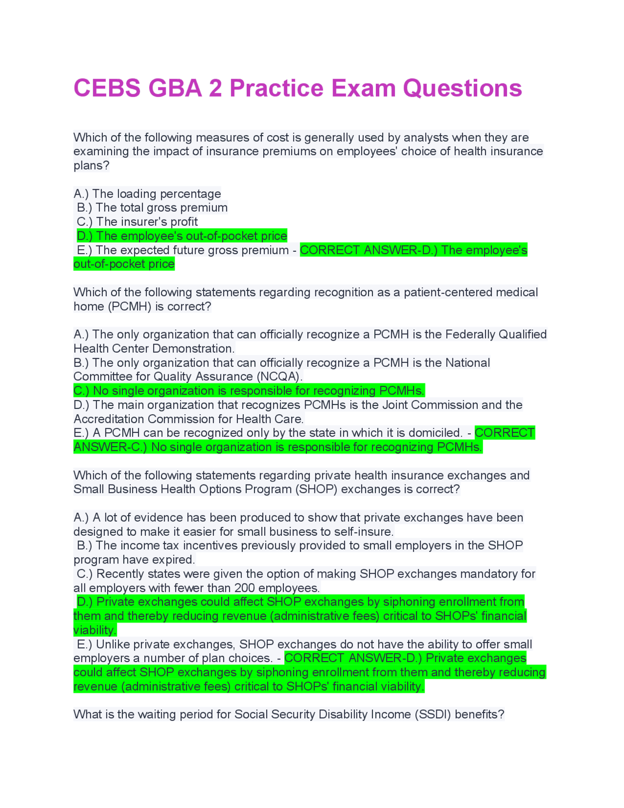 CEBS GBA 2 Practice Exam Questions with complete answer 2023 - CEBS GBA ...