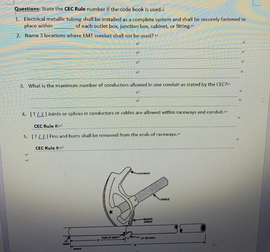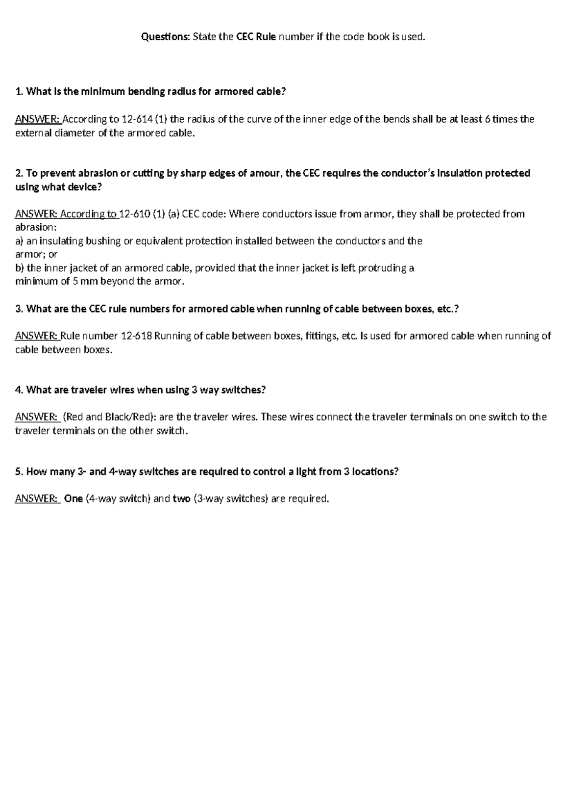 Solved Questions: State the CEC Rule number if the code book | Chegg.com