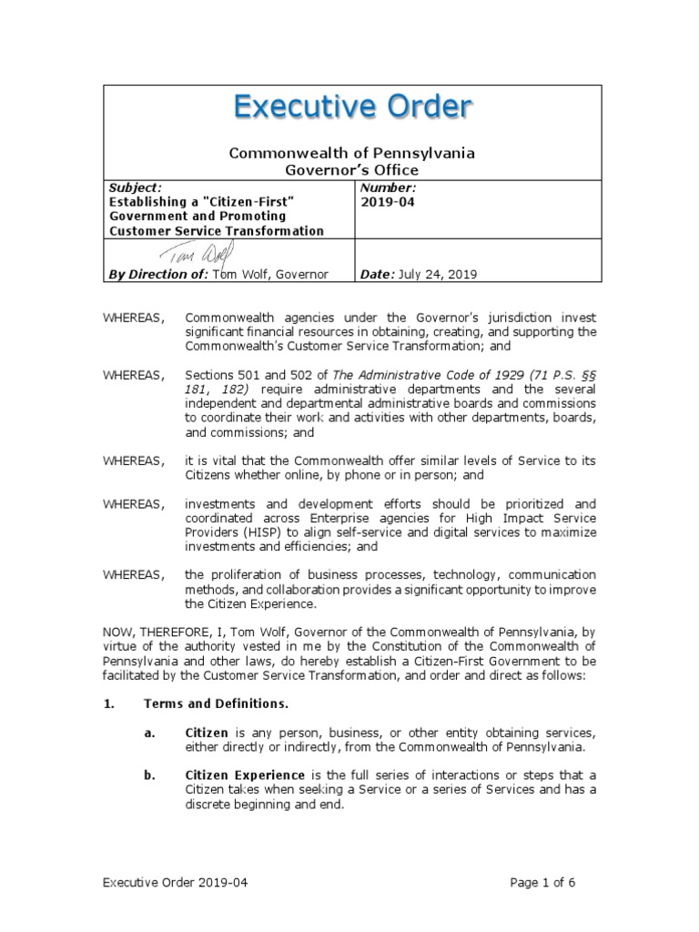 Customer First Executive Order 072419 | PDF | Business | Government