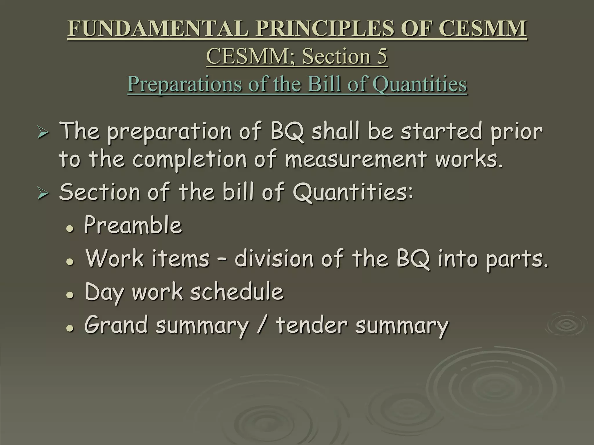 Preparation of the Bill of Quantities | CESMM4 | Books Gateway ...