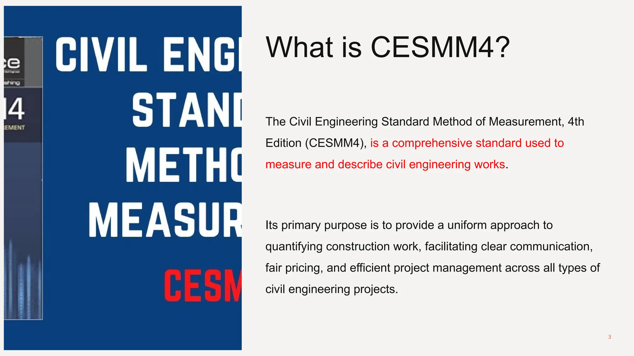 SOLUTION: Cesmm4 civil engineering standard of method and measurement ...