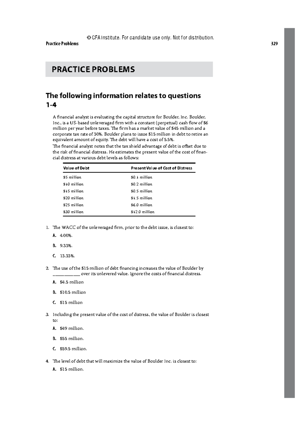CFA M6 Practice Problems - Capital Structure Analysis - Studocu