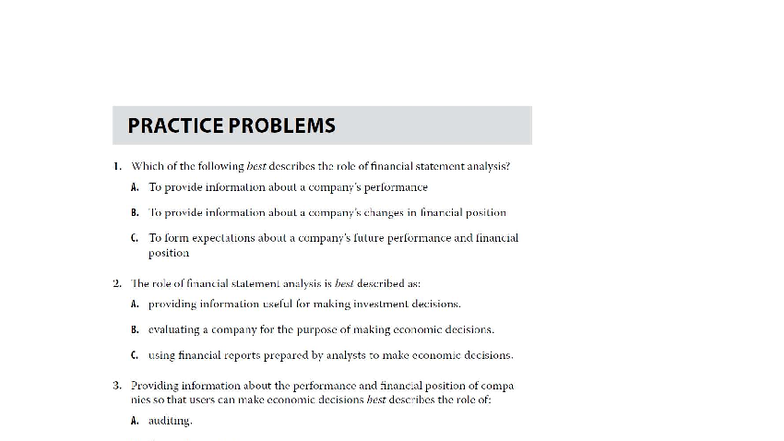 © CFA Institute - Practice Problems - Answers of Financial Statement ...