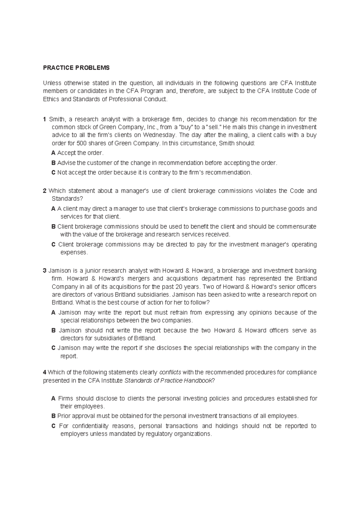 CFA Level 1 exam practice - Question 2 - Ethics and Professional ...